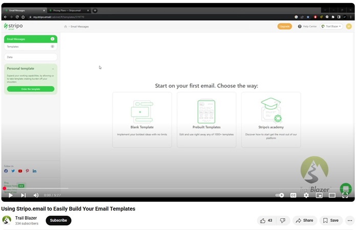 Designing Emails with Stripo 27 May 2025 Joel-Kristenson Learn how to design email templates using Stripo, and how to save those templates in your Trail Blazer CRM: https://www.youtube.com/watch?v=G0oRATd_Gkg